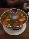 The hostess seating guests was not too friendly and kept running around here and there not even greeting the guests. She was also cleaning up the tables (one of the tables she cleaned by spilling left over water from the previous guest and wiping that off with a cloth! yukh how unhygienic!). We ordered the tom yum soup fire bowl which was very tasty but too much on the tangy side. There are a lot of sea food options and the menu is extensive. Our server was very good and prompt. The place was jam packed with a lot of wait time but that is understandable for a friday night!