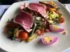 Started with a dozen of the chefs house oysters. Entree was fresh blue fin tuna lightly grilled on a bed of new potatoes, green beans on the plate sauteed in a sauce including capers as a special touch. The tuna was fresh, and lightly grilled. The Hess Monterrey Chardonnay was a great choice -- suggested by the barkeep -- and reasonably priced. The lobby contained a tribute to the founder Tom Ham, apparently a UCLA athlete, US army WWII infantry lieutenant, then restaurant entrepreneur and San Diego booster, as eulogized in the episcopal parish in 1972.