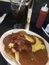 The cinnamon roll pancakes were great. Bacon was plentiful. Garden omelette was just okay with a bit too many onions, but toast was very good. Coffee was fine. Cash only. ATM machine inside, too. Friendly staff. Would recommend.