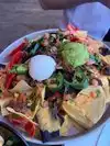 We liked eating here. I had the poke bowl and my boyfriend had the nachos. Hit the spot after a long travel day. He ordered a Pepsi and the waitress brought him a whole carafe! That was nice. He didn’t need to wait for refills. The poke bowl was quite good! Tuna, edamame, pineapple… maybe too much white rice. The nachos were huge and tasty.
