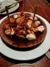 We chose this restaurant because of the many positive reviews on Trip Advisor. In our reservation, we asked for a (relatively) quiet table. Instead we were seated near a large, raucous group that was evidently celebrating something or other. When we said we'd need to leave because we wouldn't be able to hear one another, we were relocated to a high-top table at the front, which was an improvement noise-wise. However, the server had his sleeve over (i.e., touching) the middle of the bread basket when he brought it. I ordered croquettes, which were bland and uninteresting. A second tapas of chicken kabobs featured too-dry meat. Overall, a disappointment.