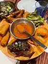 This is a fun bar to drink at. It’s tiki themed and they have rain over the pool that’s in the middle of the restaurant. After 8:15pm they charge you a $10 cover charge, even if you’re eating dinner that’s when the live music starts. The food was just ok, we shared a PuPu platter and the food was lukewarm. The drinks are strong! We shared a Monk walks into a luau and then tried their signature drink Mai Tai and a zombie. Would definitely go back to drink and listen to music.