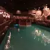 you sit at a table beside a rectangular indoor pool. Every 30m minutes, a wind comes and "rains" on the pool! In between an Asian band play well know pop songs to allow you to dance on the small dance floor. Situated in the historic Fairmont Hotel, this is worth a visit, particularly if you are staying in the hotel.