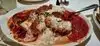 Italian cuisine family portions, a dish is eaten in two people, we had a chicken and spaghetti parmesan with meatballs in sauce (those of Lilly and the Tramp who were at Tony's restaurant) and we could not finish everything. The waiter told us they were plentiful but we didn't think so! A bit of a waste for those of us who like to taste more dishes and share them. Parmesan I would recommend the classic because with chicken slices it is really heavy, but The taste was good, we tried out of curiosity. Really good spaghetti with 4 giant meatballs. To try