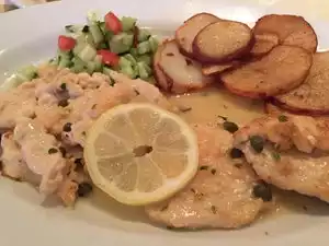 Last night I was pleasantly surprised that we were able to secure a table in the back corner. The crowd was not noisy and per usual the service was excellent. I am always looking for something different to try. Last night it was salmon piccata with steamed vegetables. I loved it.