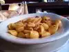 Started with the fried octopus. A bit chewy and served with a sauce I did not like. Got the Fusilli ala Topo Grigio. Studded with chunks of cold mozzarella. Hunted for the chicken bits. Left most of the unexciting sauce and pasta behind. Grabbed a snack on the way home.