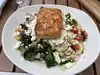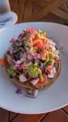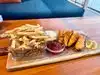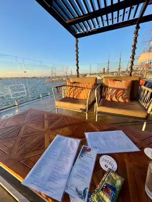 Topsail is one of the newer additions to San Diego's waterfront eatery & bar scene. Nestled on top of the Brigantine restaurant with the same shared entrance, Topsail starts off with a spiral staircase up, encased in a glass dome. The host stand is right at the top of the stairs; hostesses have always been very welcoming and friendly. There are lounge group seatings with fire pits all along the border of the place, but they go fast so make a reservation if you're going at peak times. There's also a full bar in the center with many seats, along with ample seating throughout. This is an outdoor place, so make sure you dress accordingly and bring a jacket if need. They have heaters and fire pits everywhere but the wind does flow freely through. It was lunchtime on a Saturday, but we were lucky enough to score one of the perimeter couch seating areas. The views are perfect from just about anywhere here, but our spot gave us views of the bay and the Star of India ship. This was my third time here and service was good, as usual. Topsail has a nice selection of beer & some signature cocktails, but the full bar is always ready to make your usual favorites. I always stick with my usual dirty Kettle martini when I go. We brought some visiting fiends this time and they got the Mai Tai & iced tea - the Mai Tai was tasty. For lunch, we ordered: Spanish Grilled Octopus, Pork Belly Banh Mi Bao, Chimichurri Skirt Steak, Alaskan Halibut fish & Chips, Wagyu Burger, and the Grilled Salmon Salad. The grilled octopus was decorous and tender. The banh mi baos were pretty good, but lack the full banh mi flavors and needed more acidity that pickled carrots & daikon provides in an actual Vietnamese banh mi. The skirt steak was okay, but not the medium-rare specified and the chimichurri wasn't bad. Burger and fries were good. The grilled salmon salad was filling, but the fish wasn't seasoned much and the dressing was bland. The fish & chips are my favorite, well battered and fried, chips nice and crispy. The food here is decent, but the drinks and views more than make up for it. Prices are a little on the higher side, but it's the ambiance and views that you're also paying for. All in all, a good waterfront place to lunch or lounge with drinks while catching up with friends. This was my third time here and there will be more to come.