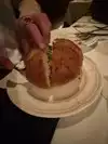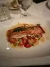My husband and I were at a private business dinner. Sitting in a lovely room with a beautiful atmosphere. Past hors d’oeuvres with your choice of either salmon or skirt steak for dinner. We both got the skirt steak with mashed potatoes which were excellent. But then, nothing special. All in all a lovely experience