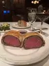 We enjoyed beef Wellington, sole, prime rib , and a filet . We shared Mac and cheese and mashed potatoes . We each ordered our own salads, and both the Caesar and wedge were terrific . Our only complaint, we felt a little rushed by the busser w the dark glasses. He kept taking dishes by reaching over the table instead of moving to the other side of the table . He boxed up our leftovers and plunked the bag on the table almost spilling my daughter’s full wine glass . Good thing she has good reflexes !