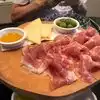 Wow! This was a delicious dinner outdoors. We really enjoyed the large charcuterie board, especially the olives and manchego. I thought the Arugula and Artichoke Salad was just ok even though the lemon dressing was delicious. My friends absolutely loved their caprese salad. The burrata looked amazing. Main course was out of sight. The most delicious eggplant Parmesan ever. Casserole style loaded with cheese and sauce. Just perfect. Service was good but it is noisy outside so it’s hard to hear the servers. Also, the street the restaurant sits on is very commercial so don’t expect nice views.