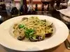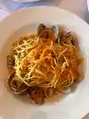 We shared appetizers and they were delicious, but my son ordered the seafood salad he saw from another table and It sounded perfect for a hot sunny day outside. Nice quantity and assortment, but each bite tasted exactly the same. It was over frisée salad and cherry tomatoes so there was no where to go. The squid, the shrimp, the octopus and almost the mussels exactly the same taste. My son asked for more lemon, but the problem was the seafood which tasted like absolutely nothing. Disappointed. But the tiramisu was delicious.