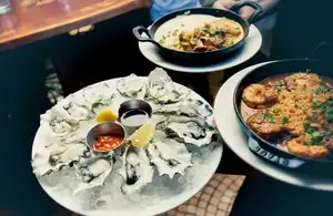 We were hoping some fantastic and different food. The menu is extensive and interesting. The Oysters Kilpatrick were very tasty; but the Tolouse style gumbo did not deliver. Although the seafood quantity and andouille were adequate; the shrimps were small with the gumbo rue and ocra non-existent. My wife had the duck confit with lentils and it was an average affair. Having to pay extra for a non-crusty baguette was a bit much. The beignettes were okay and the old fort bourbon ice cream might be the best thing on the menu. If you are familiar with good New Orleans cuisine do NOT waste your time. For the dollar value and quality of food; there are many better choice nearby. Average at best.