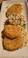 I was looking forward to the fried green tomatoes with crab. The crab was perfect and high quality. The tomatoes were too spicy as was the sauce. I would have tried mixing mayonnaise with the sauce but my server was very busy and didn't notice I was not eating the tomatoes. The spice was in/on the tomatoes. Others might enjoy that level of hot.