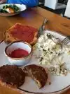 Lovely place , cool atmosphere, limited choices but fine food. I had bacon with eggs Benedicte and mashed potatoes...delicious ..but poor service..sometimes hard to under explanation of the menu....