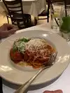 Average food at best. We made a reservation at 6pm, and there were quite a few open tables. We were sat at a wobbly table in an awkwardly tight corner. The server didn’t seem too enthused to serve us. They brought cheesy garlic bread paired with olive oil and balsamic vinegar. An odd combo that didn’t go together at all. We ordered our drinks and the server nearly rolled his eyes when I only ordered a coke. My wife ordered a Cosmo type beverage for $15. She said it was just too sweet and way overpriced. We got the Caprese salad, which was really good. We should have stopped there. We both ordered spaghetti bolognese with meatballs. It was very average, almost Ragu or Prego like sauce. The meatballs were okay. Overall, not a great experience, or even good food. $90 for very subpar Italian food and service.