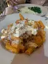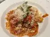 Their garlic rolls are so fresh and delicious. Complete perfection! All 3 of us ordered pasta. Everybody enjoyed their meal but weren't blown away by anything. The best dish out of the three was their "house specialty" baked ziti. Huge portion. Very cheesy and with a great marinara sauce. Service was very polite but a bit slow for such a small restaurant.