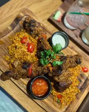 The menu was most unusual and the food was absolutely amazing. The portions are huge, so the server aptly suggested we order family-style for sharing. Everything we ordered was amazing. The items that most made an impression were the crab samosas, the lamb skewers, shrimp curry and the bread pudding. Other amazing dishes included the oxtail, the duck and the jerk chicken. Wow what a culinary experience.