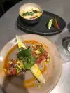 We had an outstanding meal from start to finish. The Argentinian Provoleta and Crispy Pork Belly in Pasilla Sauce were incredibly delicious, flavorful starters. Cocktail were very good. Corn Soup and watermelon avocado salad...perfection. The mains the table had were all excellent, butter chicken, soft shell crab yellow curry, lamb, and salmon. Service was excellent other than our main dishes arrived while we were still eating our soups. This a place you could go every weekend and enjoy something new