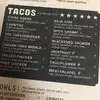 The Service: Very attentive. Staffs are very friendly, always have smile on their face. The Food: LOVE LOVE LOVE their new taco menu~ Chicken Tikka Masala Taco - Spanish Rice, Chicken Tikka Masala, Pico de Gallo, Escabeche mint crema on flour tortilla. Cheeseburger Taco - Ground beef, Taco seasoning, Nacho cheese sauce, Cheese blend, Red onion, Cilantro, Cherry tomatoes and Bacon. Mexi Falafel Taco - Kale, Cashew Cream and Pickled onions. Super creative creation, it is not just Mexican flavor anymore, they combine with other cuisines. That is what LA all about... multi-cultural! Think outside the box~ Good job Chef!!! The Parking: Plaza parking lot and street metered parking (free after 8pm)