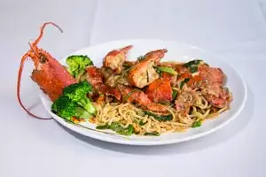 We had takeout. There are numerous seafood dishes, such as Grand Marinier Prawns and various different kinds of meat (including pineapple pork sweet and sour). Sauteed vegetables in what appears to a white wine sauce are good. As well as desert, which included a sort of red bean cake.
