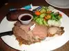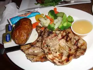 Unbelievably good food, hearty portions, and reasonable prices! My better half enjoyed a prime rib dinner with a huge baked potato, fresh vegetables, and a big slab of beef for $21. Wow! I had the same sides with a piece of nicely cooked salmon for $26. Waitress had too many tables, but got the job done.