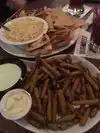This restaurant was a good option for lunch. We were seated and assisted by wait staff immediately. Tables have nice spacing between them and overall atmosphere is nice. There are many televisions for sports watching. Our wait person was amazing - attentive, professional and helpful. She even helped with a tax exempt notice quickly and efficiently. Food was served immediately and was hot and fresh. Each item was a very large portion, seasoned well, and tasted good. The drink cups are literally 32 ounces (ha!) so there is no need for constant refills. Prices were reasonable = would return again.