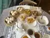Ordered a lot - their signature dumplings, the shrimp and chive dumpling, shanghai soup dumpling and the shrimp rolls and their kungpao chicken and egg rolls we had a very satisfying dinner. It is a holiday weekend, Saturday and we thought 4:30pm would be early enough…we had to wait for 15 minutes to get seated but when we left - there was a long line of people waiting to get in. We ordered shrimp rolls for take out too 👍.