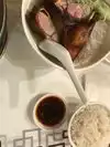 We had the Shumai, Roasted Duck, Salt & Pepper Shrimp, and Glass Noodles stir fry. Hot tea and waters were served to us soon after we were seated. Dishes came out one at a time, so I recommend family-style eating. Food was a 5-star, but really a 3-4 star on ambiance (it’s very loud and hot) and service was lacking, felt very much like we were there to eat and then get the table turned. But like I said, the food was a 5. So I’ll leave it at a 4 on my overall.