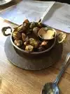 Saturday brunch inside listening to Turkish music was fantastic. We shared roasted cauliflower, fried Brussels (a little too oily) and spicy fries. Good Turkish ice tea and Turkish delight desert. Will return