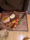 The nice about this place: the outdoor seating is well done and the servers are masked and polite. The food: we ordered cauliflower (tasted good but very oily) and chicken skewers (chicken average and the rice with it was sticky and strangely flavored). This would have been a 3 star review if not for the plates. The food arrived on wood slabs with roughly missing bark that looked like someone fished them out of a garbage bin. I don't love rustic tableware in general but one of these wooden slabs had a nail hammered into it. I can't imagine this is a sanitary option for food service and recommend that they toss these and find normal plates.