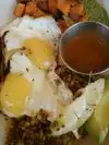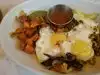 I ordered the Miso Glazed Eggplant as a Starter and the Sunrise Bowl for my main course. Two Sunny Side up organic eggs, Curry Quinoa, sweet potatoes and Pesto. I did not enjoy the sauce thay comes with this dish. I would buy the meal again.