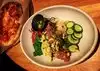 Have eaten here before and enjoyed the interesting and vegetarian friendly menu. This last visit was disappointing - the seasonal salad was primarily arugula (good ingredient but wanted some variety) and very small for the price. Watermelon and tomato salad was very good but they actually forgot to bring it - we had planned on that being a starter. Very covid clean and well spaced tables.