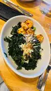 This restaurant has an extensive menu consisting of an abundance of vegetables, fruits, meats, poultry and seafood. As a starter my wife and I selected a non-alcoholic drink named Kale Aid which consisted of ginger, apple, celery. cucumber and lemon. It was refreshing. As a salad we ordered the Mediterranean salad and as an entre the Grilled Salmon. The portions are huge. We shared one portion of each. Most of the meals are coded with v for Vegan, veg for Vegetarian and with gf for Gluten Free. They are pricey but they are worthy.