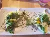 When I saw the baskets of growing herbs around the restaurant, I knew I had to try this place out. Great menu! I had a ginger, lemon honey spritzer to start suggested by my lovely waitress who suggested it when I told her I had a sore throat. I then had the fish tacos. What a nice mix of freshness and the homemade tacos tasted homemade. They make everything from scratch here.