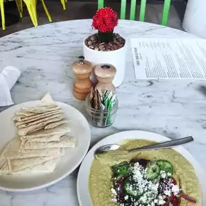 The herb hummus is my preferred option to share with friends. Everything is perfectly cooked and very healthy. The waiters are friendly and they don't rush so you can enjoy the food and the conversation.