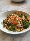 Granted that we didn't try every dishes, we can't judge much. But as far as we can tell, this is a trendy thing—healthy food gimmick. Food is good and ordinary. Drinks are much better. Both dishes—Teriyaki bowl and Spicy Shrimp Noodle—were very salty, enough for us to know that this wasn't healthy. The smoked salmon ( is not any better than what I make at home. Consomme is average. They use healthy and fresh ingredient: brown rice, quinoa, greens, edamame, tofu, etc. So if you buy into the idea, it's a happy meal. We felt it's an ordinary eatery but glad that we tried. Price is higher than you would expect for a normal lunch but understand that it's on a prime location with expensive people and expensive neighbourhood. We enjoyed the outdoor terrace, comfortable and attentive staff. They need to time the dishes better. Our entrees came out while we were still working on the shared breakfast, which caused us to feel oblige to finish the first dish fast in order for the entrees not to get cold.