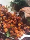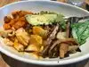 Fresh and unprocessed Ancient grains with veggies: snow peas, sweet potatoes, added chicken with a delicious sauce. Menu is full of pure foods without excessive processing or additives. It appears as though you can find a delicate balance or Spicy explosion of flavors.