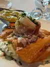 This looked like a lovely restaurant to have seafood at. The menu looked tempting and the restaurant was very inviting. The food was excellent quality and a wide selection of various seafood to choose from stop. The reason I’m marked down was that we hadn’t finished our appetisers when the main course was being brought out. So there we are stood with two plates of entrees while starters were only half done. A dilemma : do we send it back, do we accept them, why the rush! A truly, so far, lovely evening was ruined by this. One was expected by high-quality establishment like this to check how patrons are doing with their starters to ask if they were ready for their main course, or at least give them 5 to 10 minutes between courses. For this reason I won’t be returning. In mitigation the food was good.