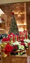 Went to trump towers on Saturday lunch time, and saw a cafe and thought we get a bite to eat whilst there The hospitality we got from the server (young girl with baseball on) was not what you would expect Very rude, not smiling, no eye contact, rolling her eyes at people and walked off whilst taking my order and asked someone else to do it , so rude. I asked for the cheese burger from the menu, and was replied with we don’t do that anymore! Time to update menu I went to ask for a napkin and there was a second young girl looked liked just starting or back from a break rolled down her mask and put lipstick on next to where food is Prepared, lovely NOT The food was good , Xmas tree nice But please cheer up acknowledge your customers
