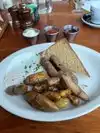 This restaurant has a diverse menu, presented and served with excellence. My wife and I had a variety of dishes, all of which were true to the culinary origins. Ranging from a superb salmon pate to east and west coast oysters to a tandoori roast chicken to Succulent fish and chips and topping it off with a banana themed trifle, our meal was delightful. Service was excellent with every member of the staff paying attention to our table and ensuring food arrived. Piping hot from the kitchen and dishes were cleared without a rush, but promptly upon finishing. Highly recommended and priced at an excellent price point for the quality received.