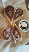 This place has a very diverse menu. Breakfast items, every kind of omelette you can think of, burgers, bowls, salads, Indian dishes, Good service. Simple, upbeat, ambiance. We came for lunch after lots of exercise and portions are generous. All dishes were delicious. Monkey bread is their specialty item.