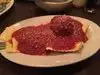 My wife and I had dinner here last night after going to a show at the UIC Pavilion 2 blocks away. Tufano's has been a pillar of the neighborhood for so long, and we try to get here when we are in the area for dinner. For a Saturday night at 9pm, the bar was packed and the dining room was coming off main dinner hour...and then many others came in like we did after the show to fill it up again. This is not "fancy" Italian, this is down-home red sauce joint food, and they do it right. A no-frills chalkboard menu for food and wine is posted in many parts of the long dining room, with very reasonable prices on everything. My wife and I love their fried calamari, and their "Tufano's Special" salad (like a chef's salad) is how we usually start. This time we chose veal parmesan and cheese ravioli (added a meatball for a few more bucks) and we each had a glass of red wine. Straight up marinara sauce on our entrees, but great quality for the price.