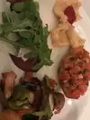 Used a Groupon on a Sunday night. Minestrone Soup - delicious - used the crusty bread to mop up every last drop Chicken MonteCarlo - huge portion of two chicken breasts covered w/fontina and proscuitto in a white wine sauce, sitting on top of a huge mound of spinach. I really enjoyed it, but took 1/2 of it home. Asparagus w/Brown Butter sauce - average Chicken w/Tomato and Fresh Mozzarella - very light and tasty - could have used more tomatoes Skipped dessert as we were too full, but it was a nice dinner. A little pricy without the Groupon so we might hold out for another type of discount before we go back again.