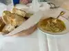 The food is very fresh. The calamari was excellent. Spaghetti with clams were outstanding fresh fish. The chicken with potatoes was very good and very well cooked. The location was great plenty of seats in the dining area. Service was excellent. Definitely will go back.