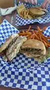 I so badly wanted to like this place. They have real onion rings and enough burger choices to accomodate anyone, including a bean burger for the vegetarians that do not like Impossible or Beyond burgers. Sadly, our excitment stopped here. Mostly this is an outdoor place. I have no proble with that, but upon check in, we were not welcomed nor did we seem wanted. We asked for inside and were taken to this small room. The menus were given to us and we sat whie people walked around ignoring us. When we got served, the waiter was kind. Our order was taken and the food came quick. The meat had no seasoning, so the burgers were nothing special. There was no seasoning in the batter of the onion rings, fried pickles or salt on the homemade chips. Sadly, all 6 of us felt sick within a coupe hours of eating here, with 1 person vomitting. That was all we ate that day, so we are pretty sure that it was the food. The bathrooms were clean but tiny. 6 burgers, 4 sodas was $150.00