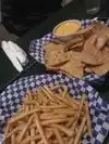 Children’s choice after a concert. Seated outside at picnic tables covered with paper. Okay, except that the tables boards were all uneven so tabletop was all different levels. Drinks split at least 4 times. The potato chips (that their famous for) that came with meals were hard and impossible to chew. The tortilla chips were thick and not good (next table said they were the leftover corn tortillas from day before). The hamburgers and French fries were good. Fish tacos were excellent. Onion rings mot worth the calories! The worst part of visit was the waitress. She fluttered around and mumbled terribly. Would have liked a drink but could not understand her between the mask and mumbling in a quite voice over loud music! We gave up. Wish we had her name but she was a dishwater chin length blonde with shorter stature. Please address with your staff to speak louder and to enunciate the their words do customers can have a pleasant visit!