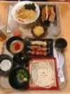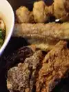 Quite a new experience of udon bar for us, and itโs great. The idea is simple, you choose the size, flavor of the udon you want at the bar, and the guy pours it to you in 10 secs. Then you pick up any side dish you want and head to the pay station. The thick cut udon noodle turned out to be great. The texture is perfect, tender with a little chewy, just the way a good udon should be. The broth was excellent, full of flavor yet subtle and not too salty. My wife ordered their curry udon and the curry was very nice. Unlike the over sweetened Japanese curry sauce sold in super markets, this curry sauce got quite a kick, which comes just right for the udon noodle. The portion is pretty big. I hardly finished my medium bowl, and my 8-yo son could only finish half of his small bowl. It would be great if they can offer a kid-size. The udon noodle comes with the green onion, seaweed. Then there are other side dishes like various tempura, fried chicken to order. Though the udon noodle bowl itself is at great price, the side dish is a little overpriced.