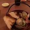 Waited for friends and wolfed down their excellent read and butter . Spoiled my appetite so didn't notice much of the subsequent food. So why am I writing a review? Because the level of sound was remarkable. I had to yell to get beard across the small table. Looked around and saw everyone doing the same to be heard. Wow what a din!