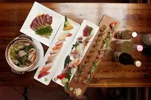 Loved everything about this place - the fresh sashimi, unique rolls and the hamachi kama (cheeks) Nice welcoming touch with complimentary edamame. Service was very good without being obtrusive. It gets busy so be sure to book in advance.