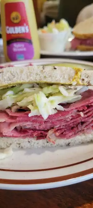 I love finding a deliI haven’t been to yet. This is a traditional Jewish deli. I had a reuben. My wife had sweet and sour soup. Everything was good from the pickles to the finish.